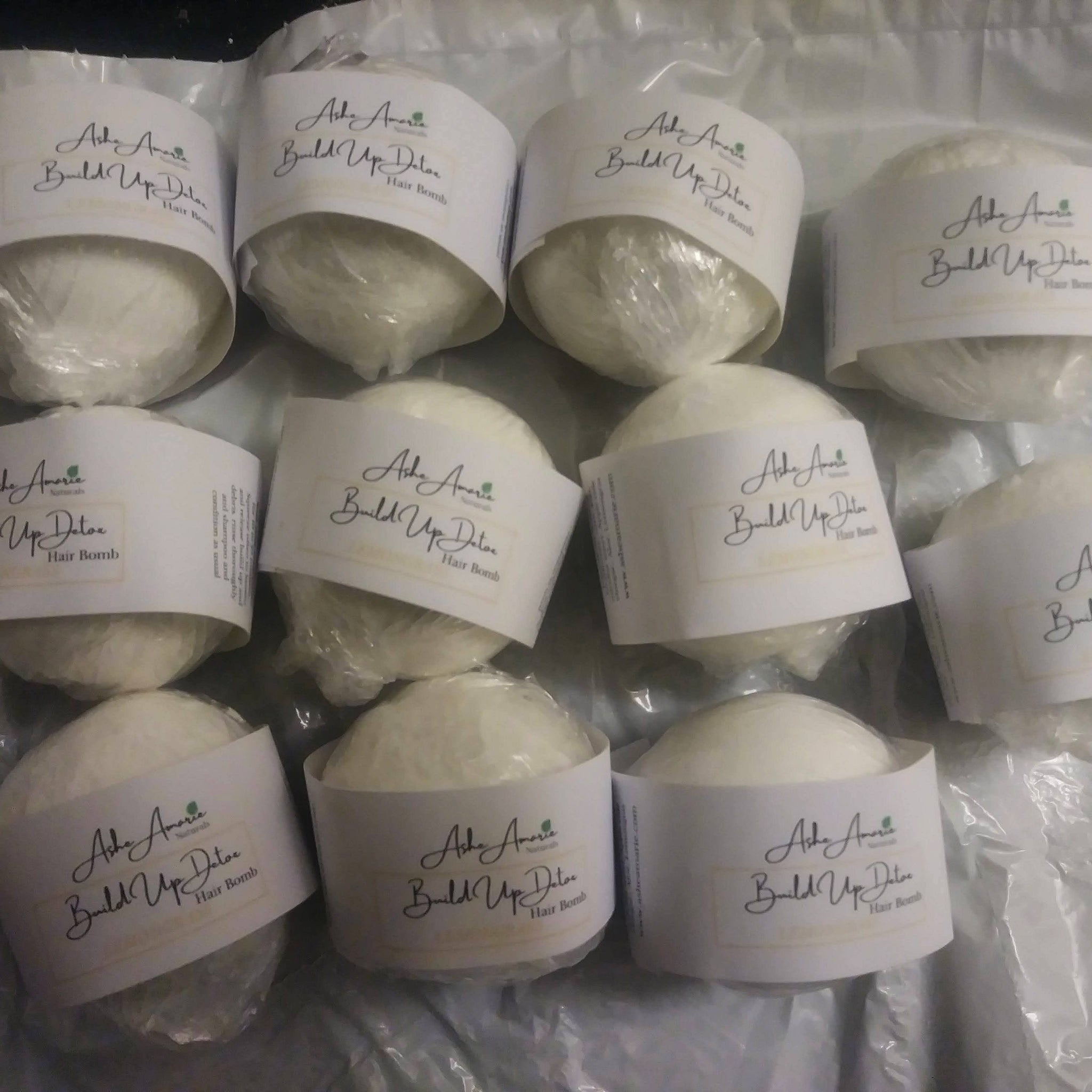 Build up bombs are a quick and easy solution to remove build-up and impurities from your strands whether it is from wearing braids for a long period of time or you have locs. Citric acid along with baking soda and ACV will clean, dissolve build up and balance the pH balance of your hair and scalp.